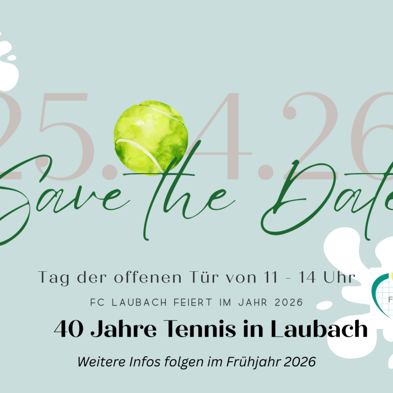 Wir laden zur Saisoneröffnung am 25. April 2026 ein - zugleich feiern wir das 40-jährige Jubiläum unserer Tennisabteilung beim FC Laubach.
